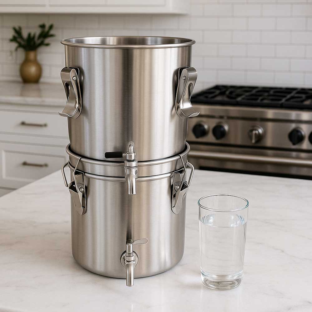 Absolutely. It’s a gravity-fed, non-electric system that works anywhere—ideal for prepping, homesteading, or natural disasters.